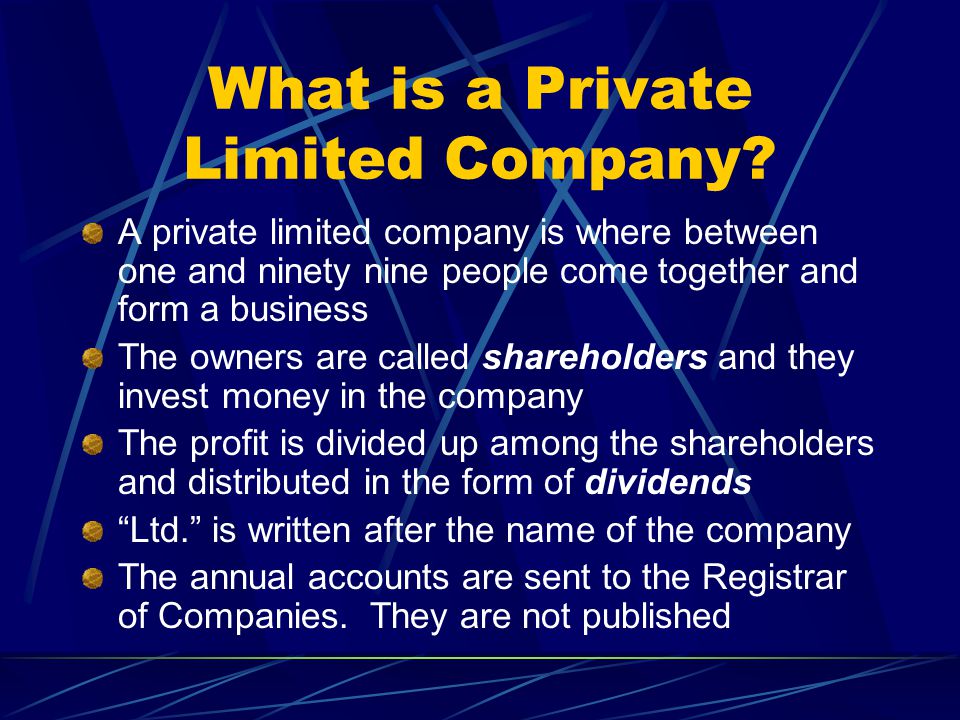 Separate Legal Entity: A Private Limited Company is considered a separate legal entity distinct from its owners (shareholders) and directors. It can own property, enter into contracts, and sue or be sued in its own name.